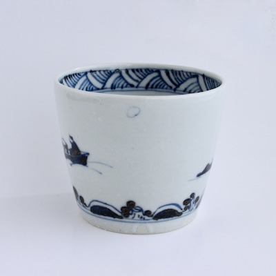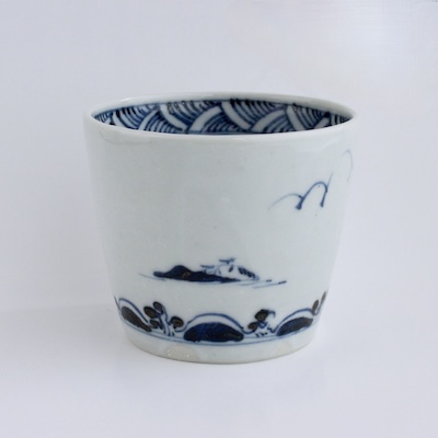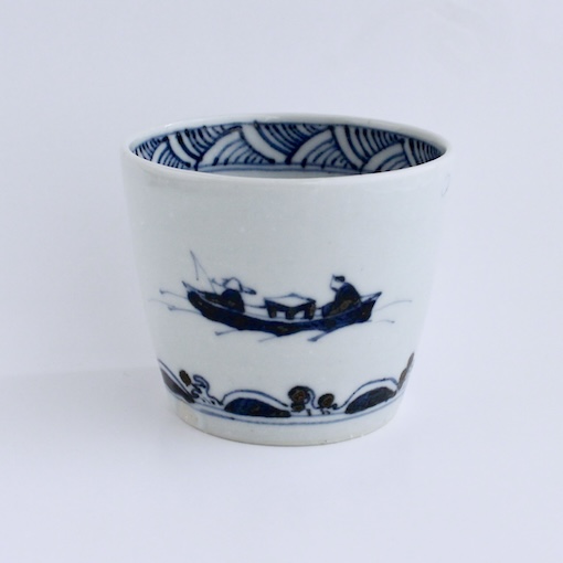 小舟に乗った釣り人の図が風流なそば猪口です。