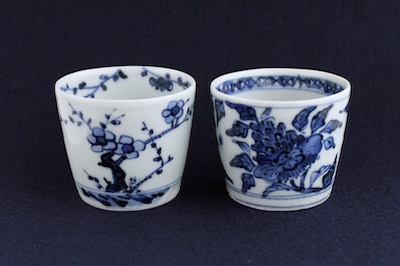 同柄のふっくら丸みのある形の酒呑と並べてみました。